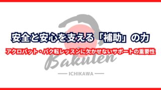 安全にアクロバットを楽しむために補助は“安全”と“安心”を生み出す基本アクロバットやバク転の練習において、欠かせないのが「補助」です。体を支えることだけでなく、挑戦への不安を和らげ、自信を持って技に挑めるように導く重要な要素です。特に初めて...